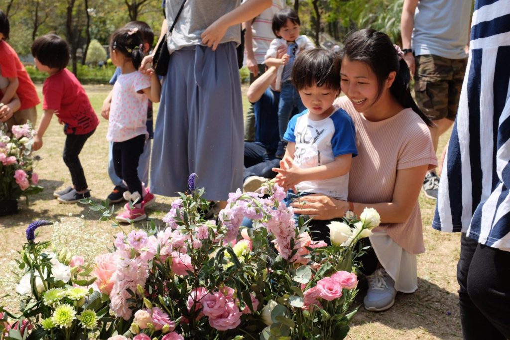 活動:共讀繪本《小小鄰愛種花》,親子身體遊戲,賞花採花,製作鮮花花束