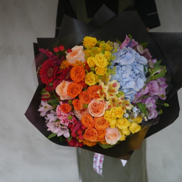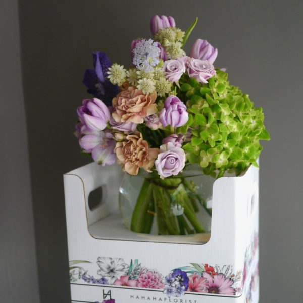Mixed Hydrangea and Light Purple Rose Flower Basket
