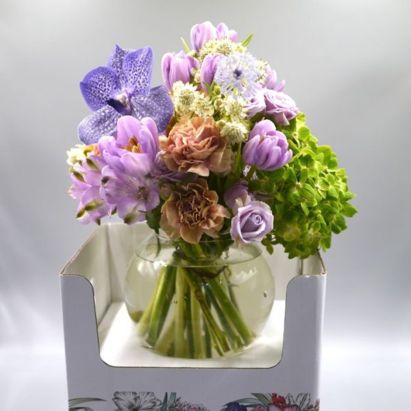 Mixed Hydrangea and Purple Orchid Opening Flower Basket