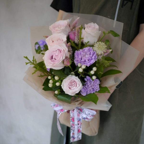 Signiture Mini Heart-Shaped Pink Rose with Vase